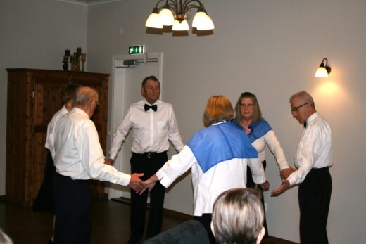 Raahen ja ympäristön eläkeläisten sekä Eläkeliiton Raahen yhdistyksen eläkeläisten tanssiryhmä ilahdutti juhlassa tanssiesityksillä.