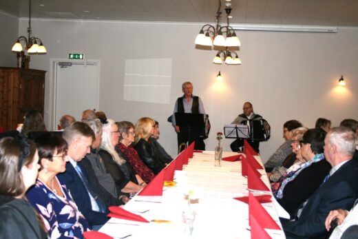 Sulevi Leinonen lauloi juhlassa ja johti yhteislaulua upealla harmonikkasäestyksellä.